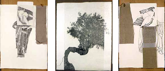 Papiers toile et transparents superposés sur arches 246 x 125 cm / Transparent marouflé sur toile 162 x 130 cm / Papiers toile et transparents superposés sur arches 246 x 125 cm